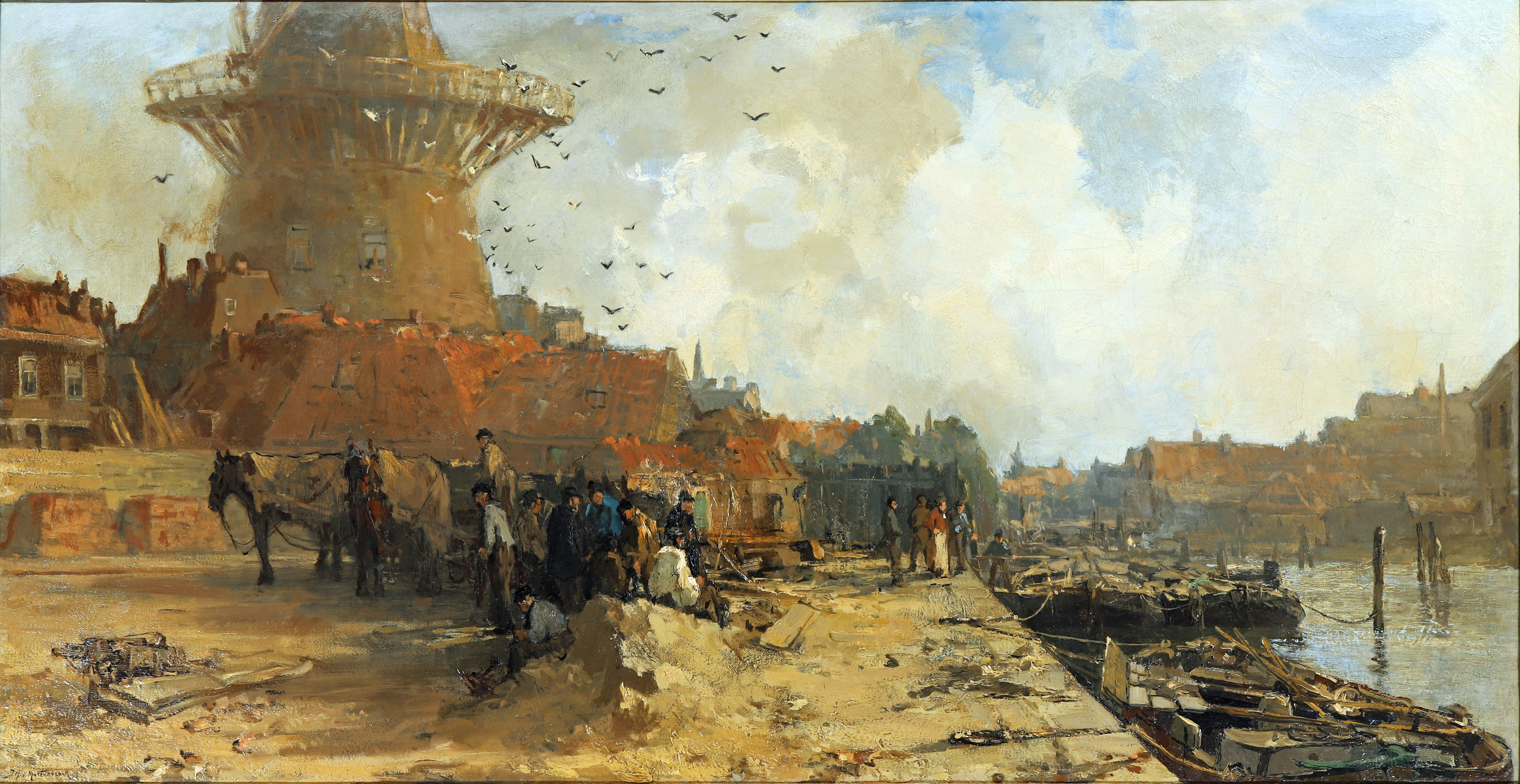 During his lifetime, Johan Hendrik Van Mastenbroek was considered as being part of the continued flowering of the ‘Haagse School’. His harbor and city views (mainly of Rotterdam) show similarities with the work of Jacob Maris (1837 – 1899). Van Mastenbroek was also known as the “little Maris”. Van Mastenbroek’s father Johannes (1827-1909) played an important role in the marketing of his works. Through his art dealers, Van Mastenbroek senior had contact with Hermanus Gijsbertus Tersteeg (1845-1927), who was the most important representative of contemporary art in the Netherlands at the time. Tersteeg bought a number of watercolors and drawings from Johan Hendrik and mediated in reselling them to his foreign trade contacts. Van Mastenbroek was added to the group of Dutch impressionists.