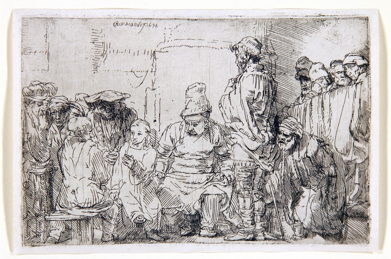 The theme Christ disputing with the Doctors was close to Rembrandt’s heart: he used it as a subject for several etchings as well as a number of drawings. It gave him an opportunity to use his considerable powers of invention in portraying the scholars’ skeptical reactions to the arguments of the self-assured boy.